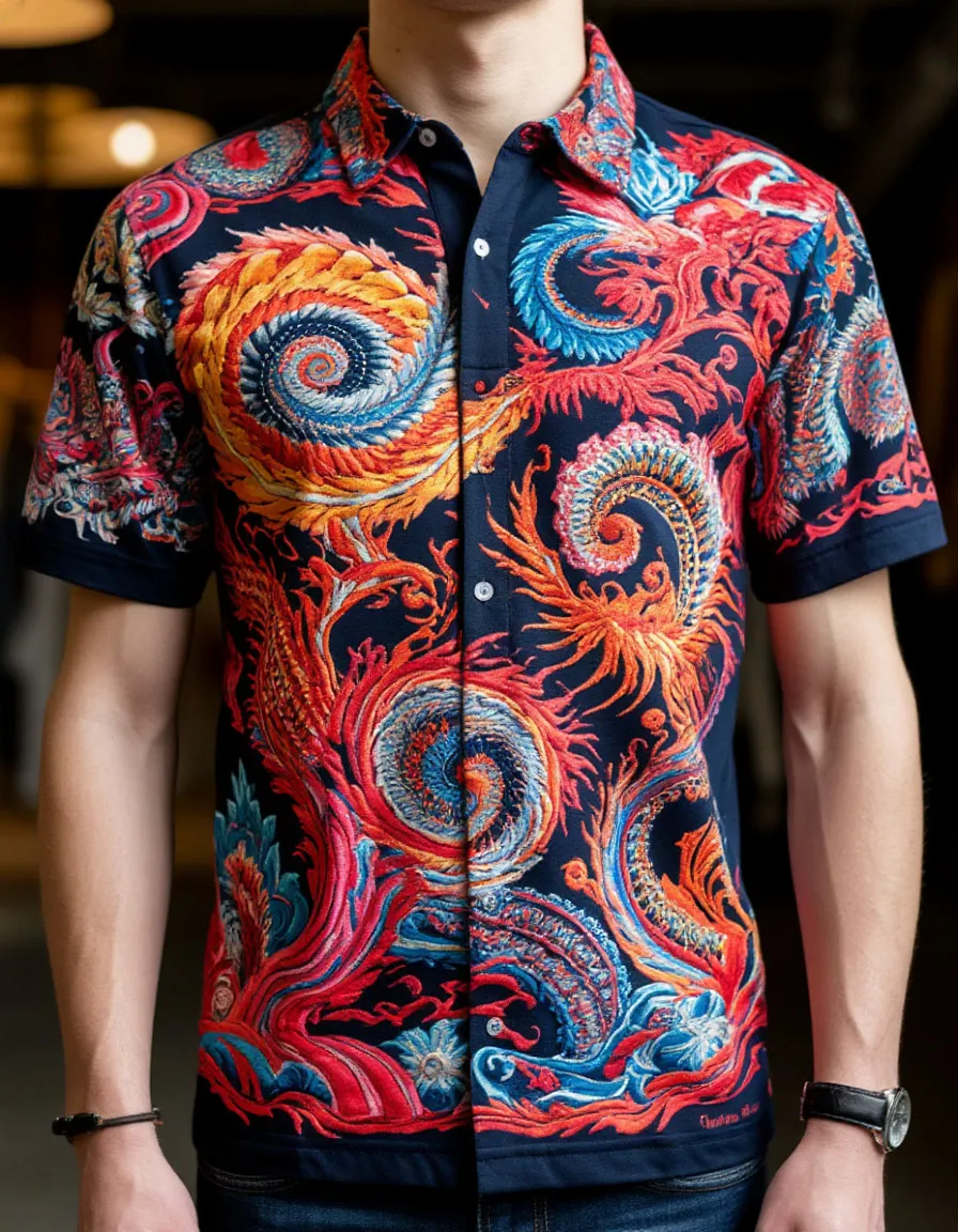 Классическая вышивка создает плоское, но фактурное изображение за счет плотного переплетения нитей. Современные компьютерные вышивальные машины (такие как японские Tajima) способны с ювелирной точностью до 0,5 мм воспроизводить сложные многоцветные композиции со скоростью до 1200 стежков в минуту.